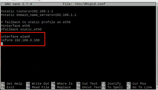 sudo nano /etc/dhcpcd.conf