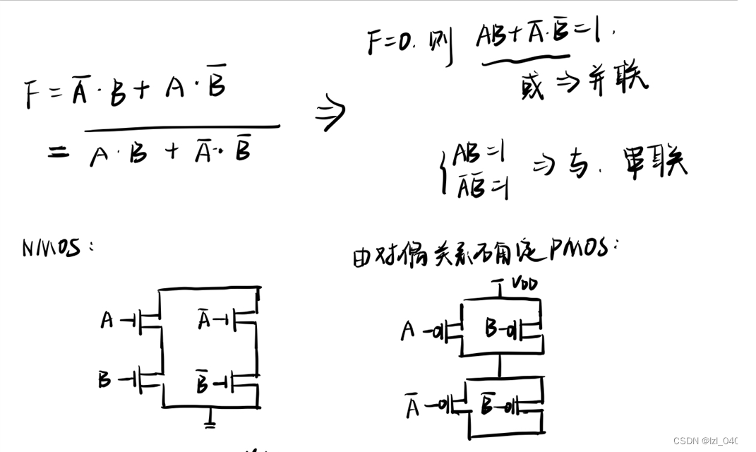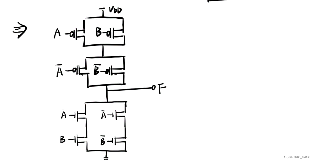 2. 直接用晶体管而不是逻辑门实现异或门,并解释这个电路是如何工作的。