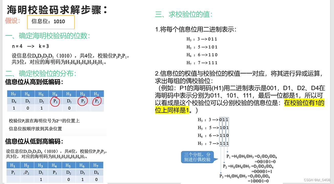 1. 上网查找海明检验码(又称汉明校验码)的编码原理,举例说明它是如何发现错误和纠正错误的。