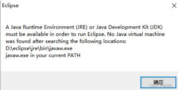 双击 eclipse.exe 即可启动 eclipse,如启动出现以下提示:
