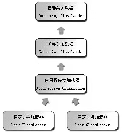 双亲委派模型的工作过程是:如果一个类加载器收到了类加载的请求,它首先不会自己去尝试加载这个类,而是把这个请求委派给父类加载器去完成,每一个层次的类加载器都是如此,因此所有的加载请求最终都应该传送到顶层的启动类加载器中,只有当父加载器反馈自己无法完成这个加载请求(其搜索范围中没有找到所需的类)时,子加载器才会尝试自己去加载。