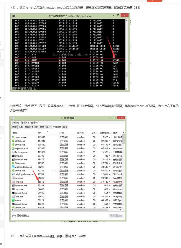 错误: 代理抛出异常错误: java.rmi.server.ExportException: Port already in use: 1099; nested exception is: