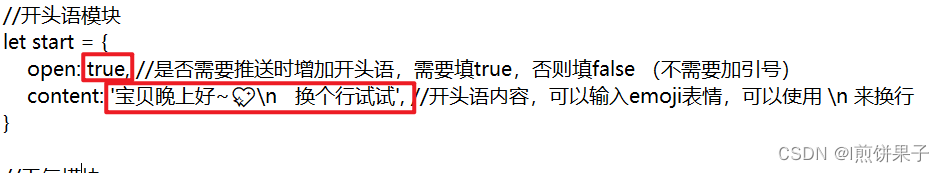 在 content 里面输入你想要的开头语(在两个单引号中间输入,引号不能删掉)