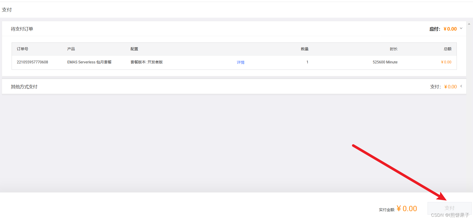认证成功后,打开这个网址,开通云函数服务 移动研发平台EMAS按量付费 (aliyun.com)