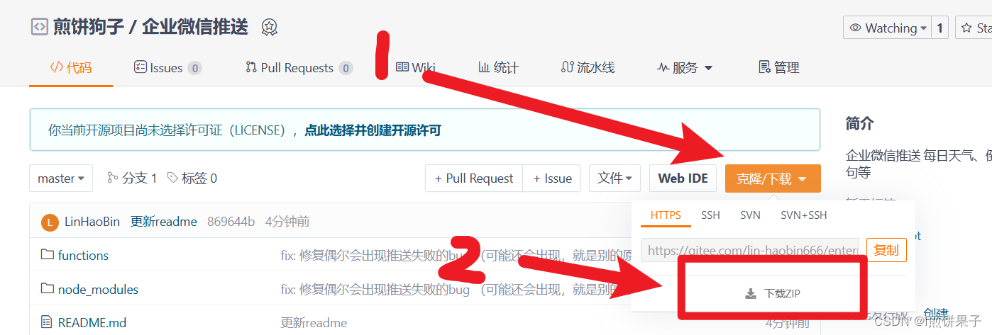 在下面给的地址中下载源码 这里为了减少操作难度,使用下载zip进行演示 (除了使用下载zip的方式,也可以通过git拉取代码)
