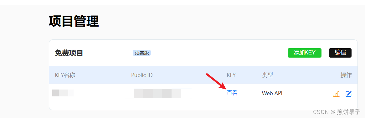 创建好后,回到项目管理页面,点击查看,然后复制key,保留备用,下面会用到