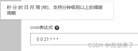 输入cron表达式,一共有6个位置,每个位置用空格隔开,可以输入数字等 * 代表任何时间都执行 (具体可以搜索cron表达式进行学习)