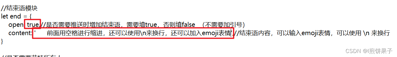 注:还有一个彩虹屁模块没截图出来,在“结束语模块”和“艾特模块”之间