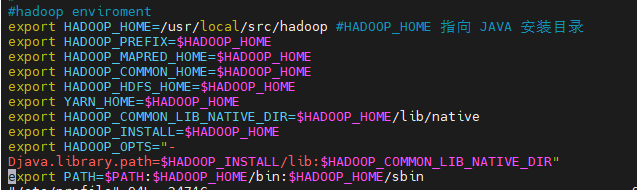 export HADOOP_HOME=/usr/local/src/hadoop #HADOOP_HOME 指向 JAVA 安装目录