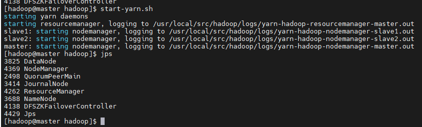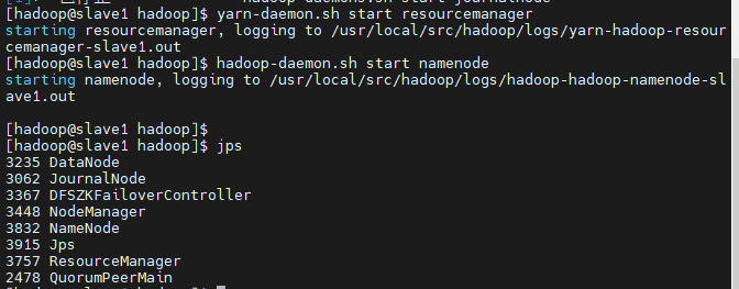 在 slave1 上启动 resourcemanager 和 namenode 进程