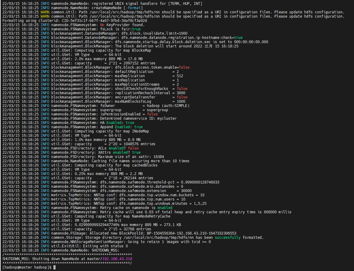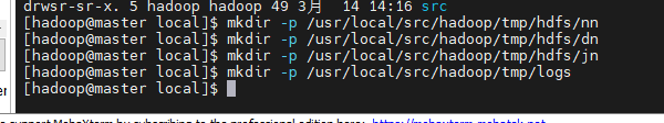 mkdir -p /usr/local/src/hadoop/tmp/hdfs/nn