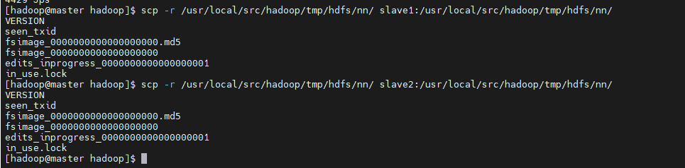 scp -r /usr/local/src/hadoop/tmp/hdfs/nn/ slave1:/usr/local/src/hadoop/tmp/hdfs/nn/