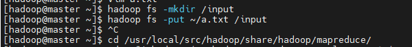 hadoop fs -put ~/a.txt /input
