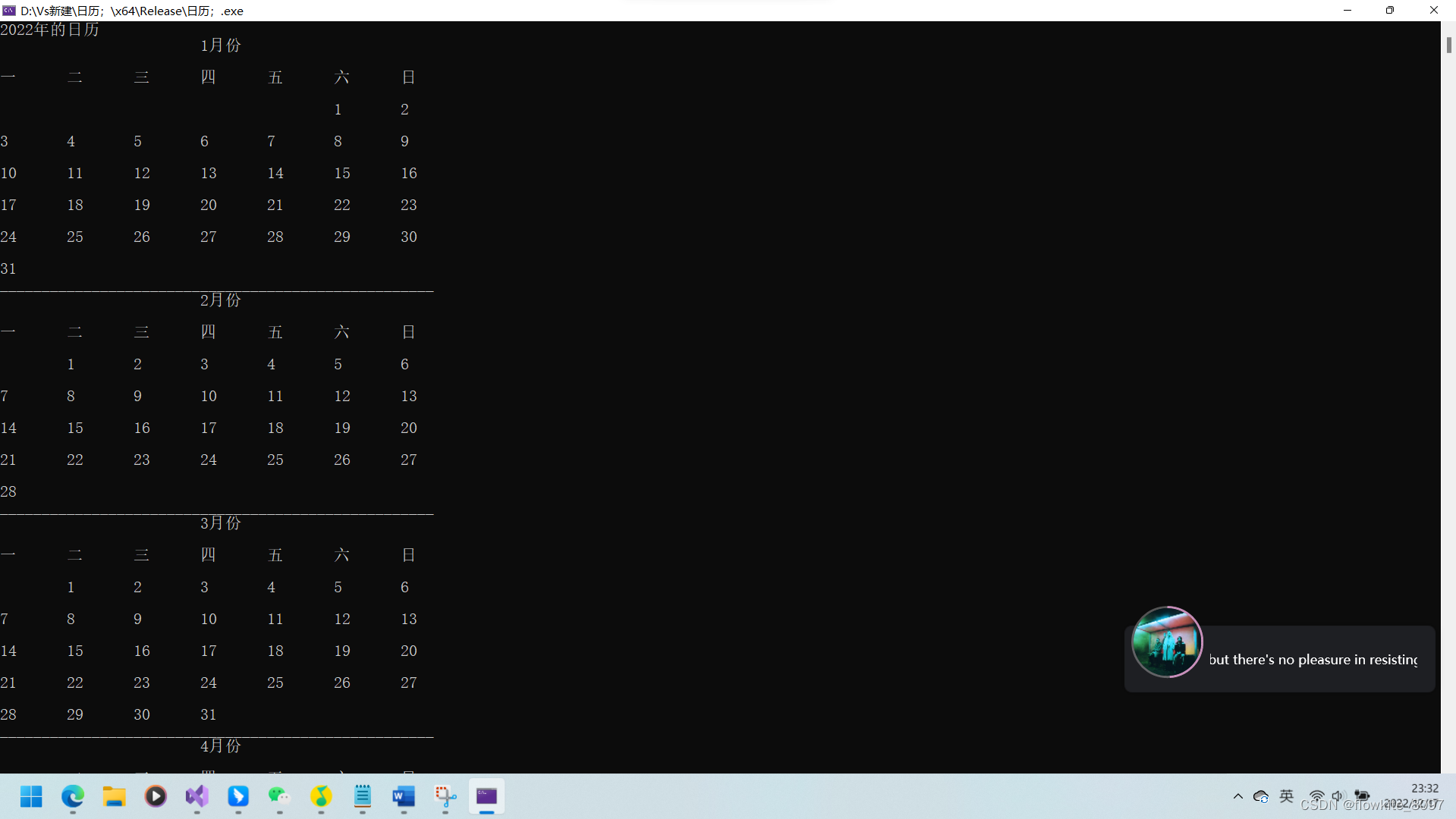int sc(int n, int d1,int i1);//输出每个月的日历的函数