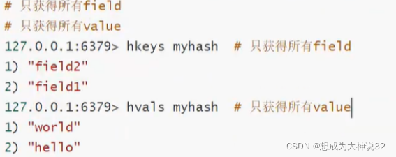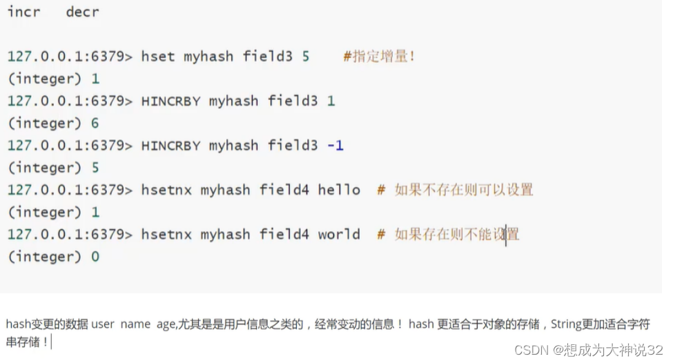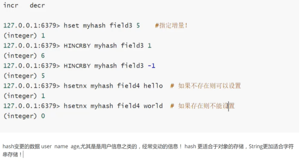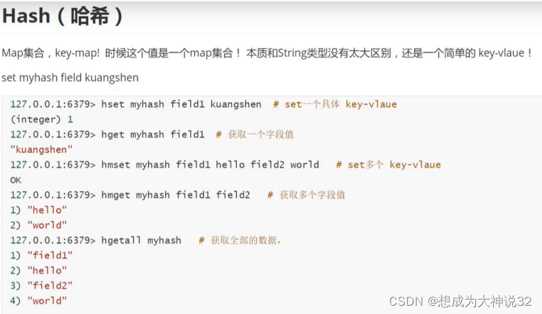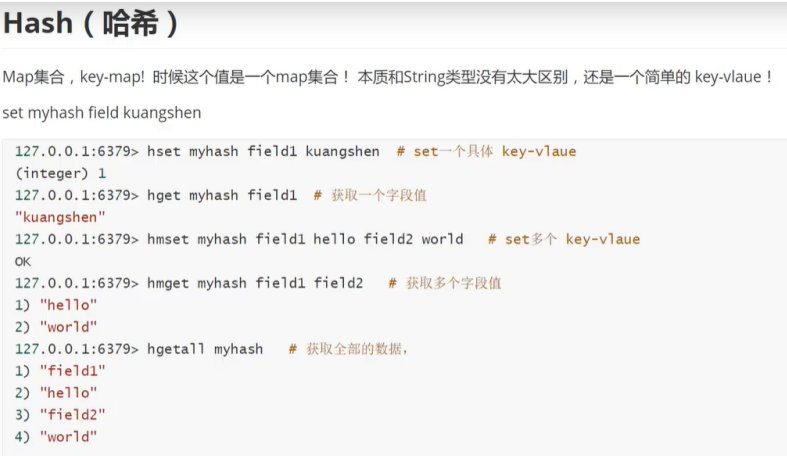 5.hash数据类型支持的常用命令: