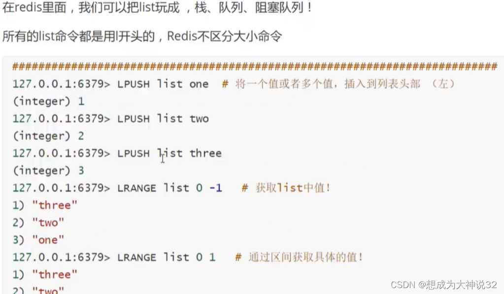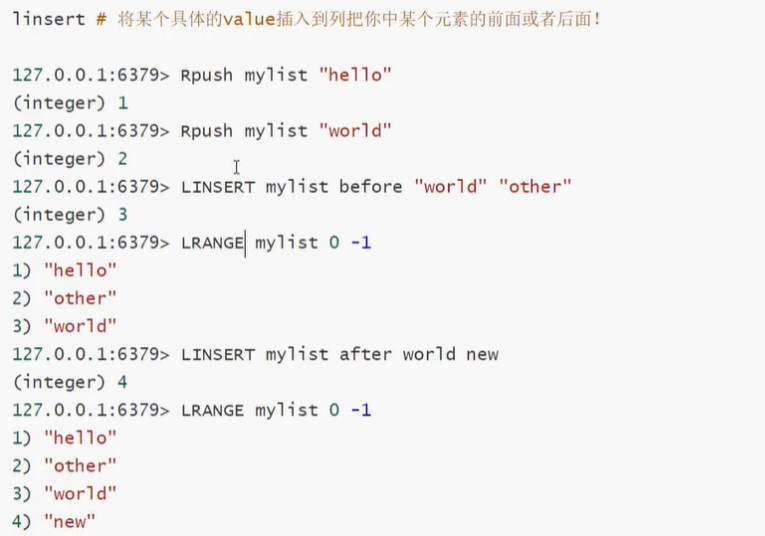 3.list类型支持的常用命令:、