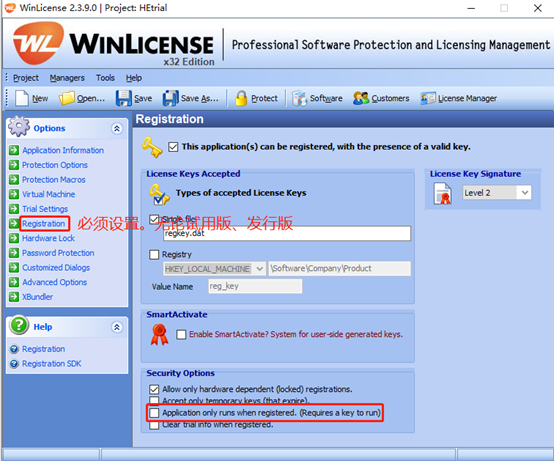 作为许可证管理器:WinLicense提供最广泛的选项和功能,可为应用程序创建试用版和注册版。当应用程序过期、许可证损坏等时,开发人员亦无需在其应用程序中包含额外的代码。