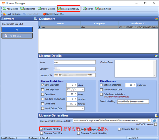 生成的regkey.dat文件分发给用户,放到发布软件的安装目录下,即可。
