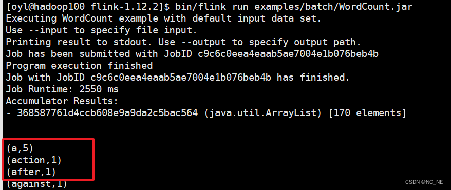5)、执行官方示例, 可以看到flink任务运行成功,至此flink的安装部署完成。