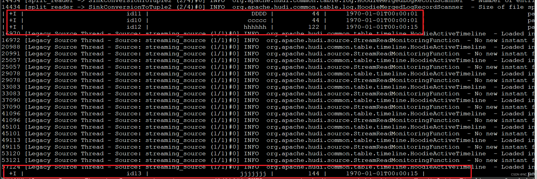 read.streaming.check-interval 指定了 source 监控新的 commits 的间隔为 4s;