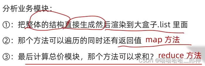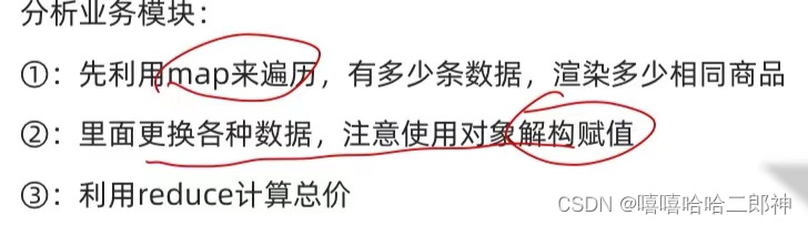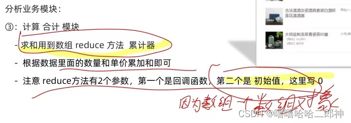 注意:在计算合计模块,reduce方法时第二个初始值要写 0 ,因为这是一个数组对象,如果不写得到的第一个 pre是对象。
