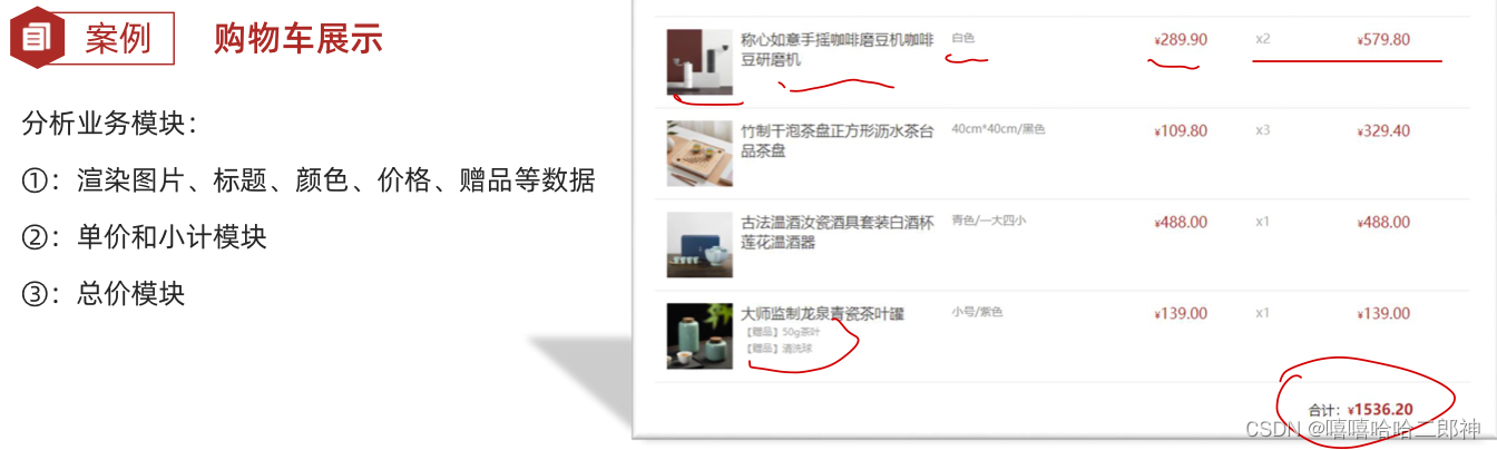 根据后台提供的数据,渲染购物车页面
