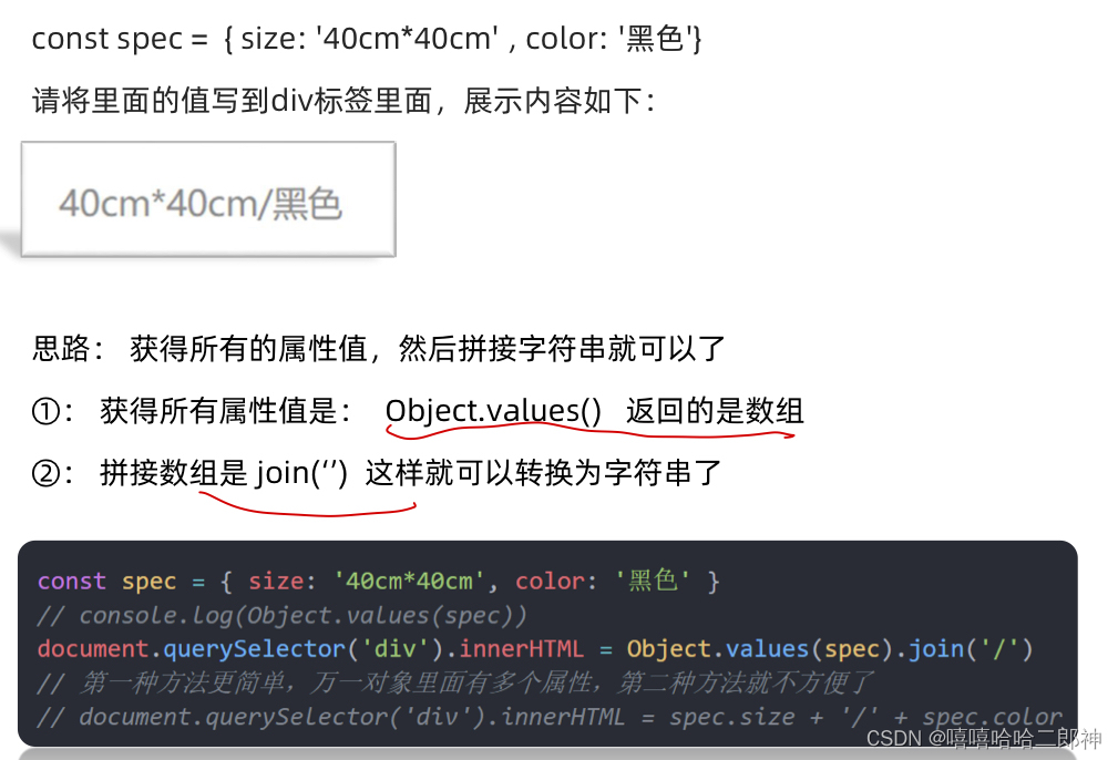 // 2. 转换为字符串 数组join('/') 把数组根据分隔符转换为字符串