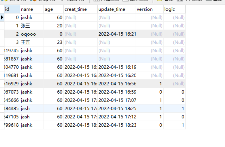 数据库的表数据: