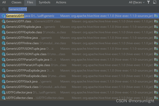 在自定义UDTF函数时,通常需要继承GenericUDTF函数。Hive源码中提供了以下六种UDTF函数继承GenericUDTF类和八个文件(其中需要关注UDTFCollector类),其中GenericUDTFExplode即hive中explode(炸裂函数)。
