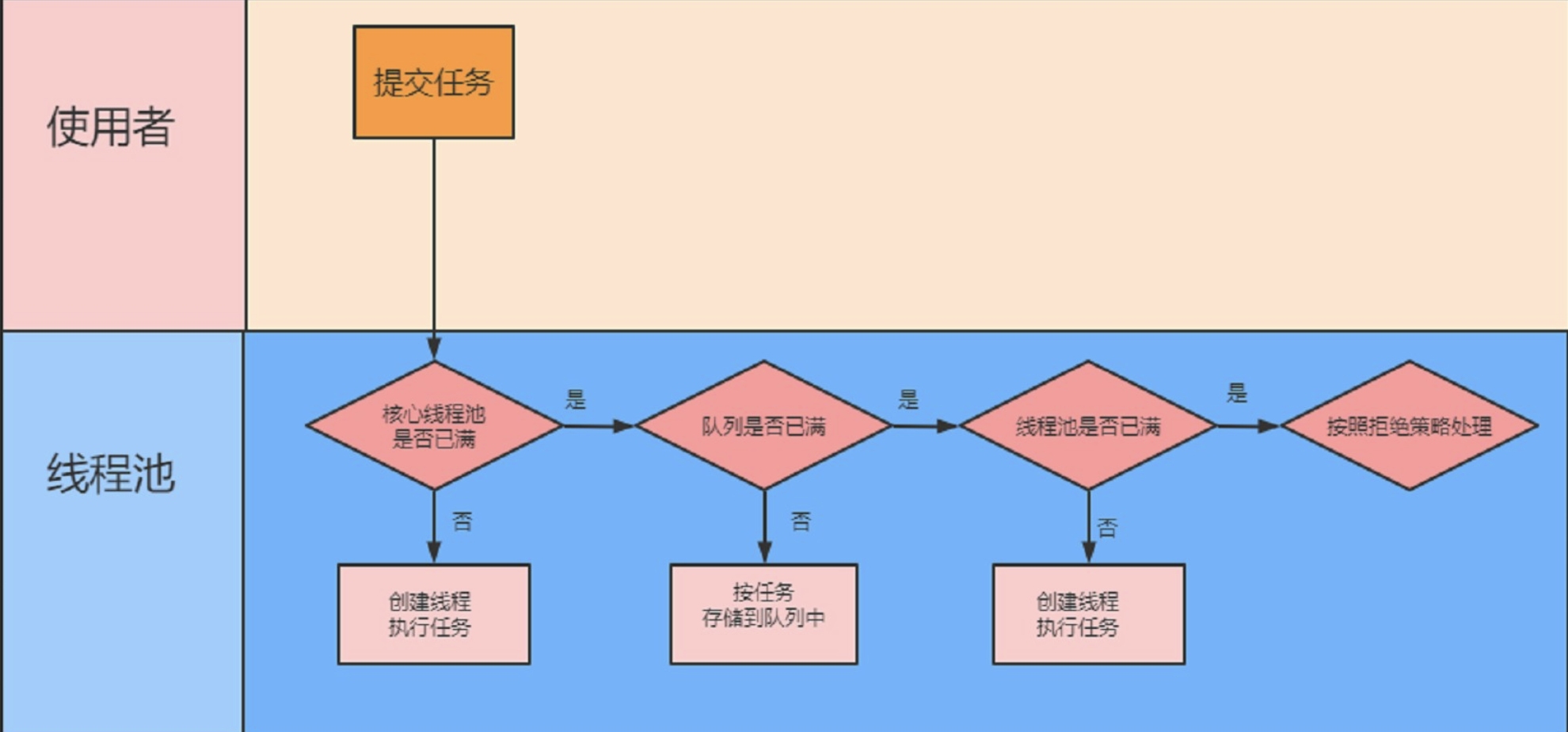 2).当调用executor()或者submit()方法添加一个请求任务时,线程池会做如下判断: