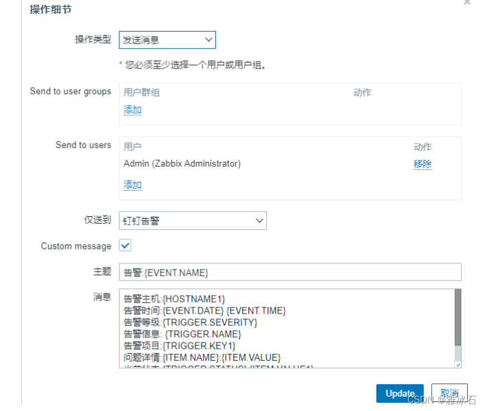 --本篇文章参考了Zabbix实现钉钉群告警_夏诗曼CharmaineXia的博客-CSDN博客_zabbix 钉钉告警