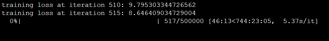 tips:这个50万次是原来默认的,但是一般在训练一个网络之前,我通常都会把迭代次数调小一点,比如调成200,这样的目的是为了看训练完一遍的结果,看他训练结束后会咋样,会不会报错啥的,然后有些可能还会测试,所以先看它完整的一遍流程,最后确保无误之后,把迭代次数调大,然后就可以高枕无忧了。