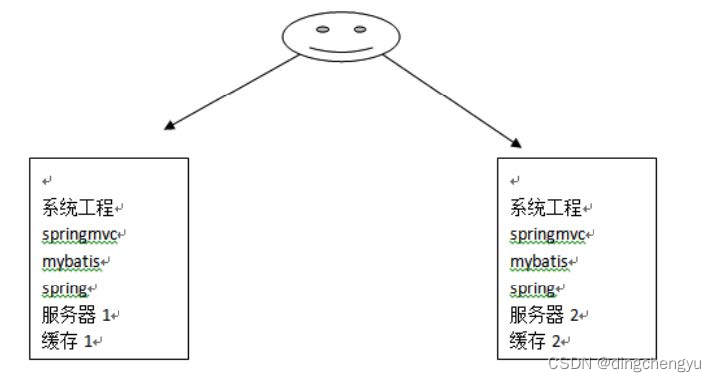 上⾯我们介绍了 mybatis⾃带的⼆级缓存,但是这个缓存是单服务器⼯作,⽆法实现分布式缓存。 那么什么是分布式缓存呢?假设现在有两个服务器1和2,⽤户访问的时候访问了 1服务器,查询后的缓 存就会放在1服务器上,假设现在有个⽤户访问的是2服务器,那么他在2服务器上就⽆法获取刚刚那个 缓存,如下图所示: