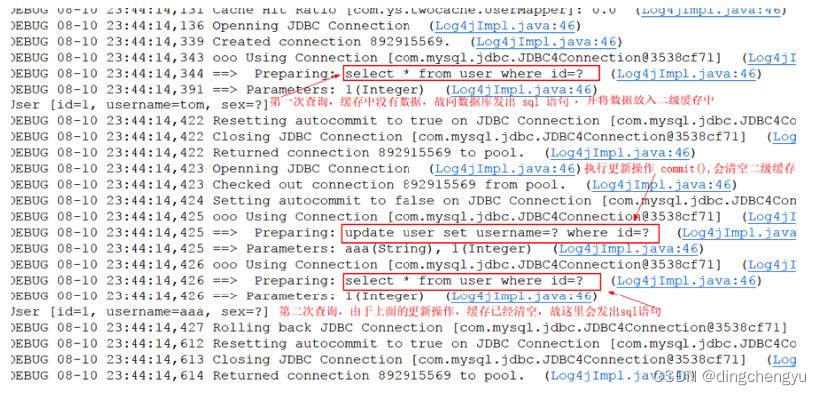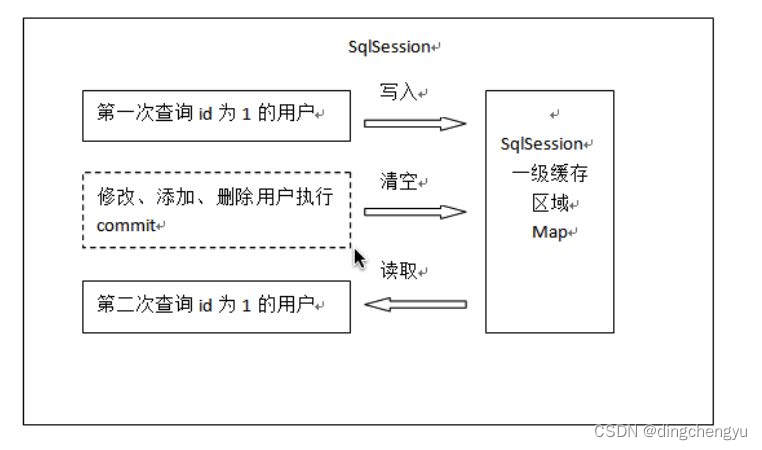 2、 如果中间sqlSession去执⾏commit操作(执⾏插⼊、更新、删除),则会清空SqlSession中的⼀级缓存,这样做的⽬的为了让缓存中存储的是最新的信息,避免脏读。