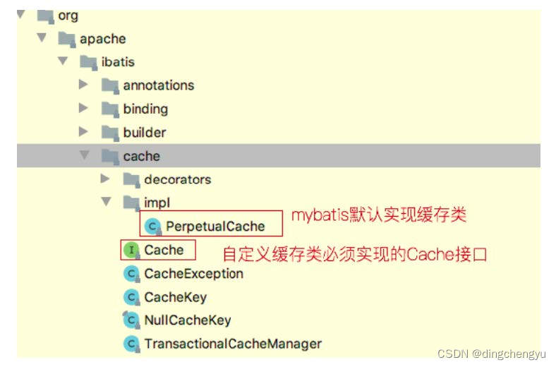 mybatis默认实现缓存功能的类。我们不写type就使⽤mybatis默认的缓存,也可以去实现Cache接⼝来⾃定义缓存。