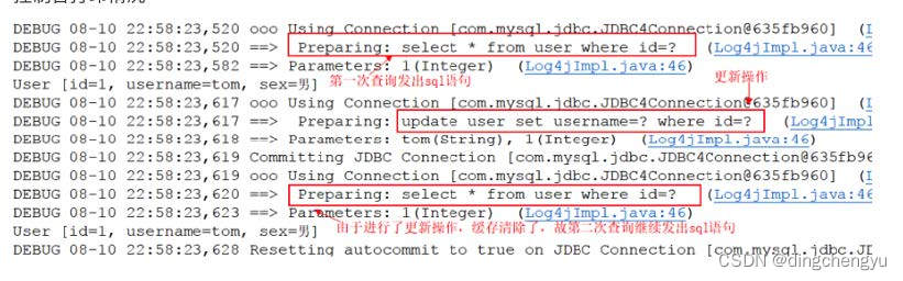 //第⼆次查询,由于上次更新操作,缓存数据已经清空(防⽌数据脏读),这⾥必须再次发出sql语