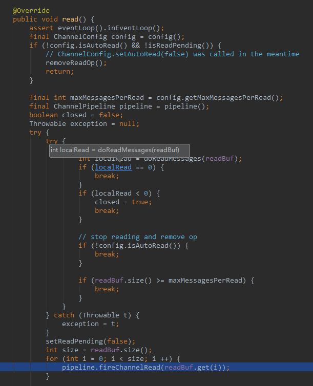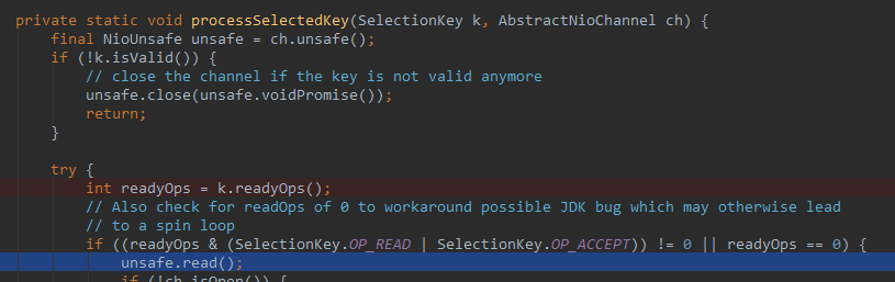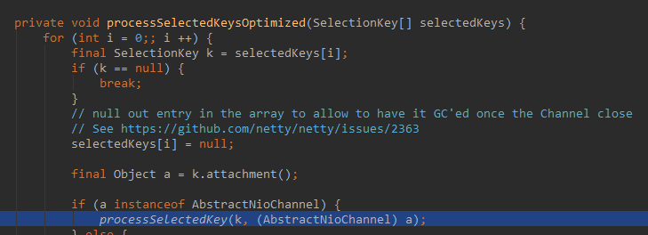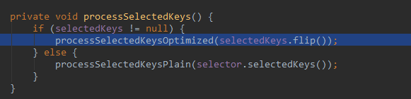 processSelectedKeysOptimized:571, NioEventLoop->这里的for循环的seletedKeys.size>0