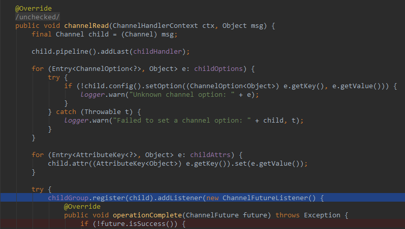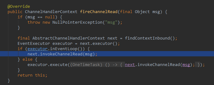 后面该Worker的NioEventLoop的死循环会取出来这个任务执行,所以会发现ChannelInboundHandlerAdapter的channelRead方法是由Worker线程执行的。