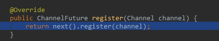 register:86, MultithreadEventLoopGroup->这里用next()选出合适的NioEventLoop(它里面的thread是Worker线程),这个注册操作和boss线程组最开始注册的模式是一样的,只是Factory选择的是Worker组。