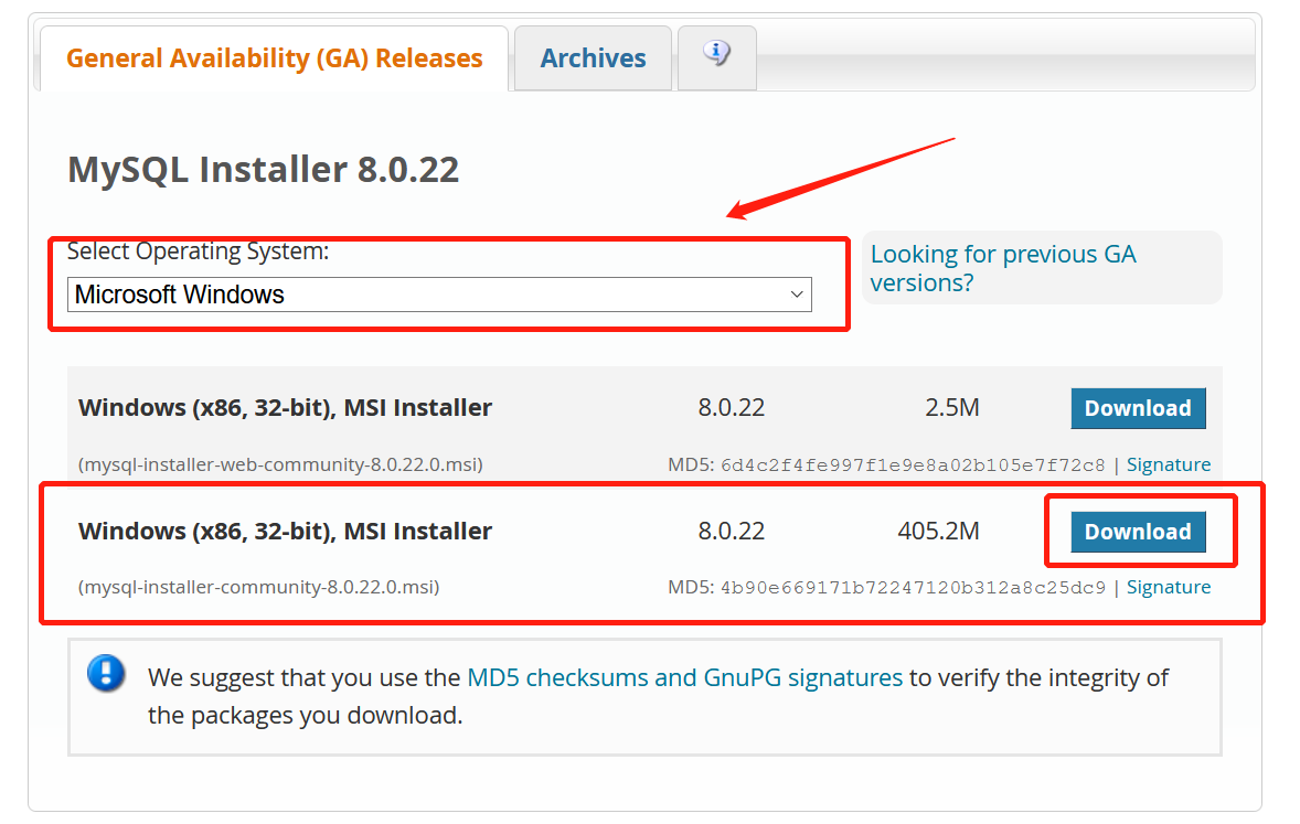 下载地址:https://dev.mysql.com/downloads/windows/installer/8.0.html