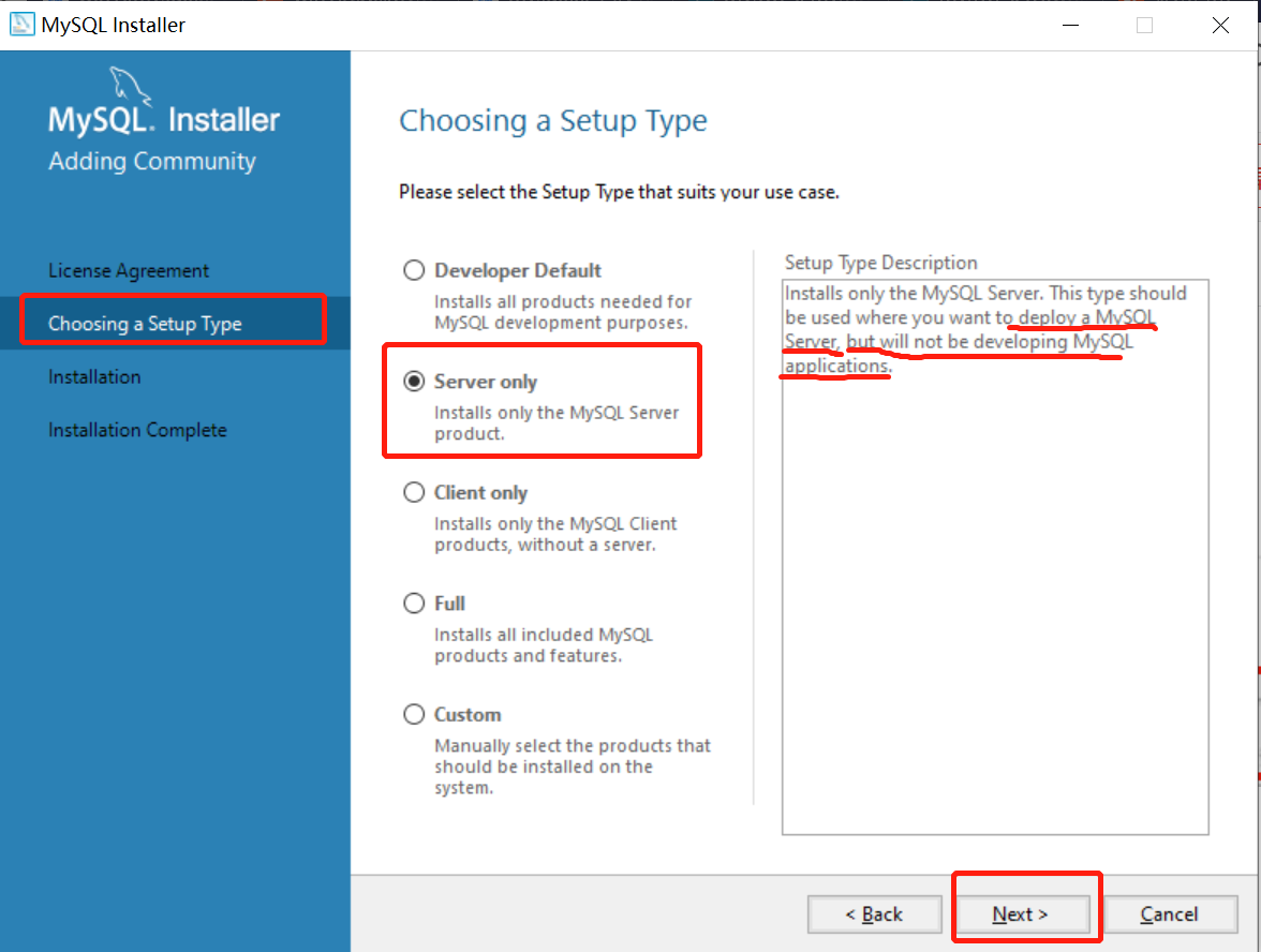 这里选择第二项,只使用MySQL Server服务。如果你需要其他组件可以按需求进行选择。