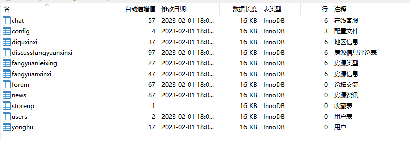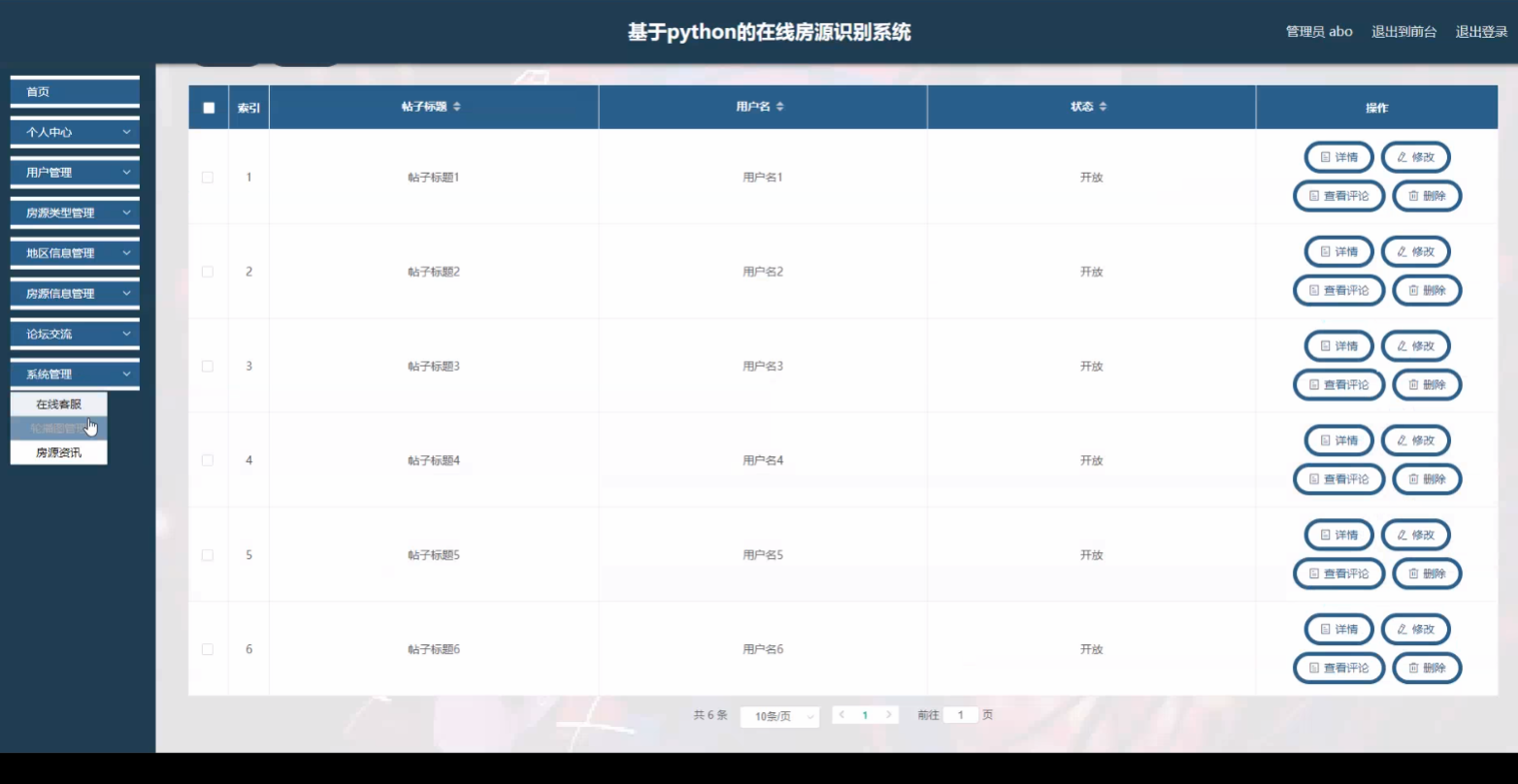 管理端功能有:用户管理、房源类型管理、地区信息管理、房源管理、论坛管理、系统管理