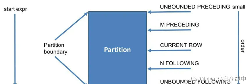 RANGE BETWEEN UNBOUNDED PRECEDING AND CURRENT ROW:为默认值,即当指定了ORDER BY从句,而省略了window从句 ,表示从开始到当前行(当前行永远是最后一个值)。