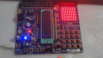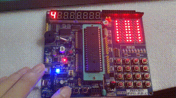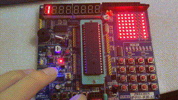 4.按下独立按键 4,松手之后,8 个 LED 灯作一次花样循环。