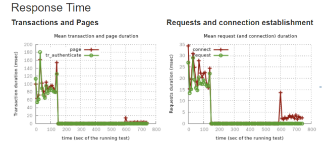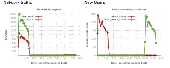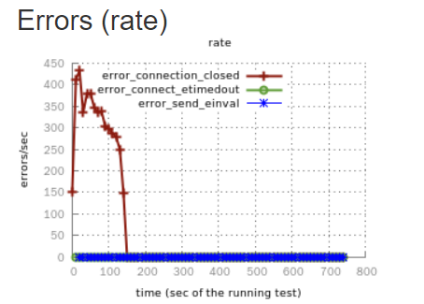 根据上面图表可以发现,注册主要集中在前面150秒完成,并成功达到25000用户量,持续连接到约600秒后开始释放,在此期间,CPU一直处于高负荷状态,是需改进方向。