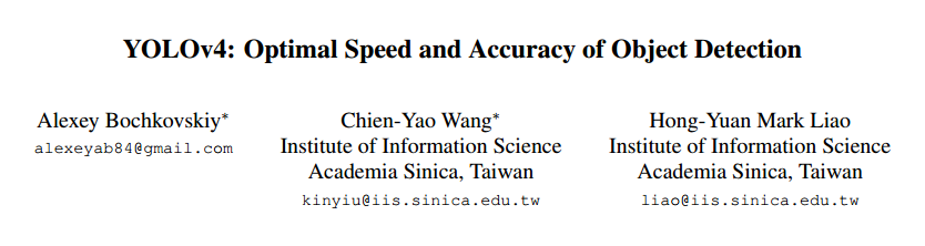 那天中午,当看到v4提出的消息的时候,真的很高兴!当看到第一作者不再是Redmon的时候,心中还是有点抗拒的,但是,作为Redmon认可的v4以及了解v4接棒人AB对整个YOLO算法精度和速度提升的效果之后,我第一时间将论文下载了下来,花了将近两天的时间精读论文并且翻译了原文。