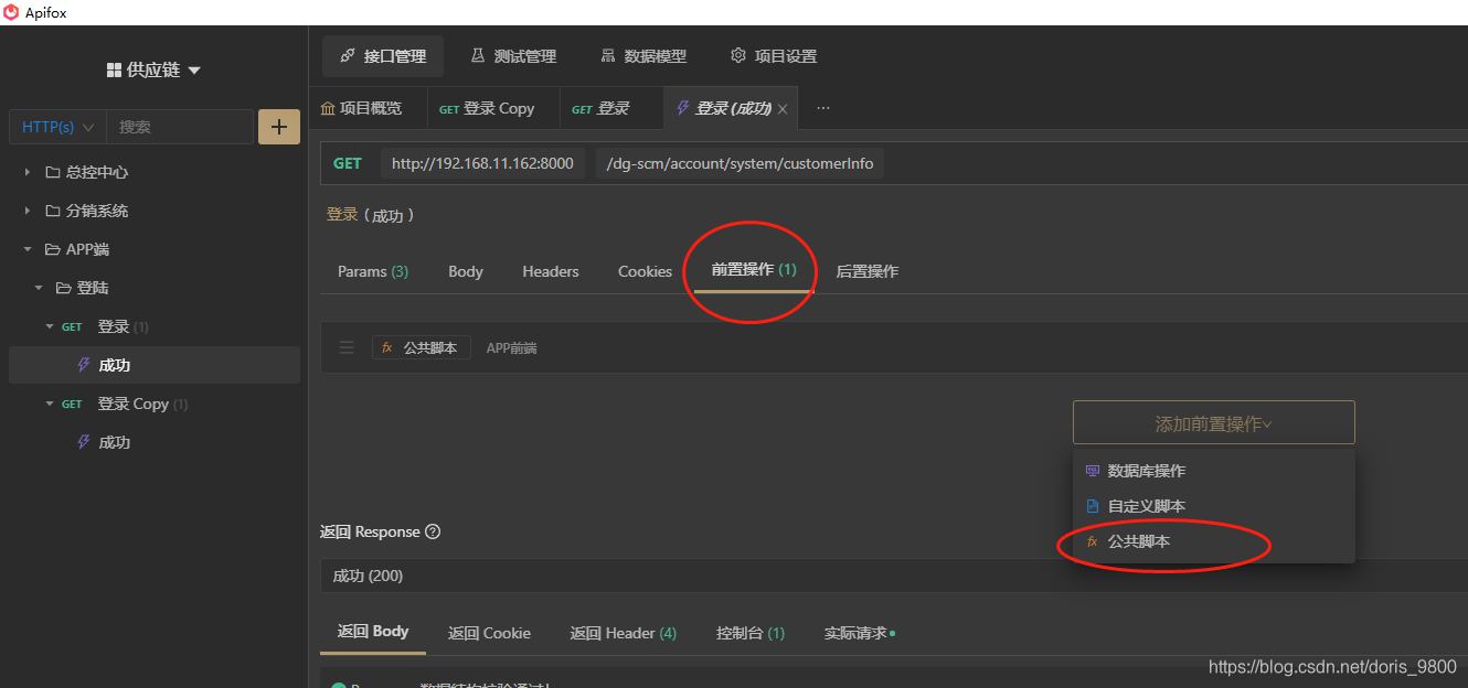 apiFox可以在前置操作直接调用公共脚本,这个还是很方便使用的。