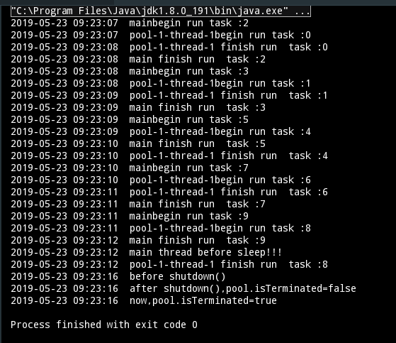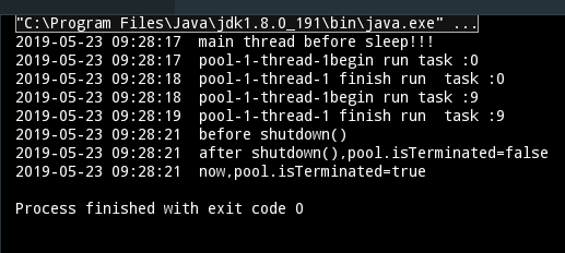 2019-05-23 09:20:58 pool-1-thread-1 finish run task :0