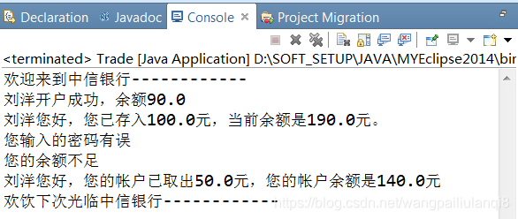 System.out.println(name + "您好,您已存入" + turnover + "元,当前余额是" + balance