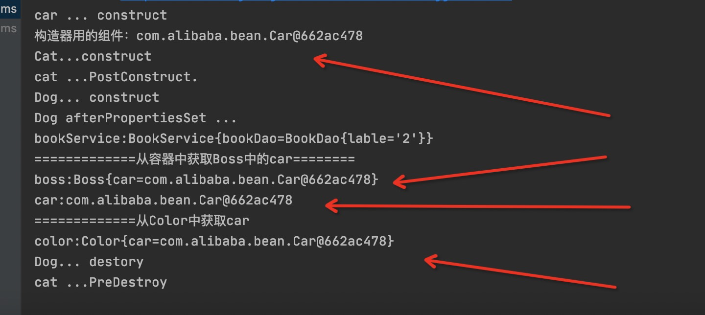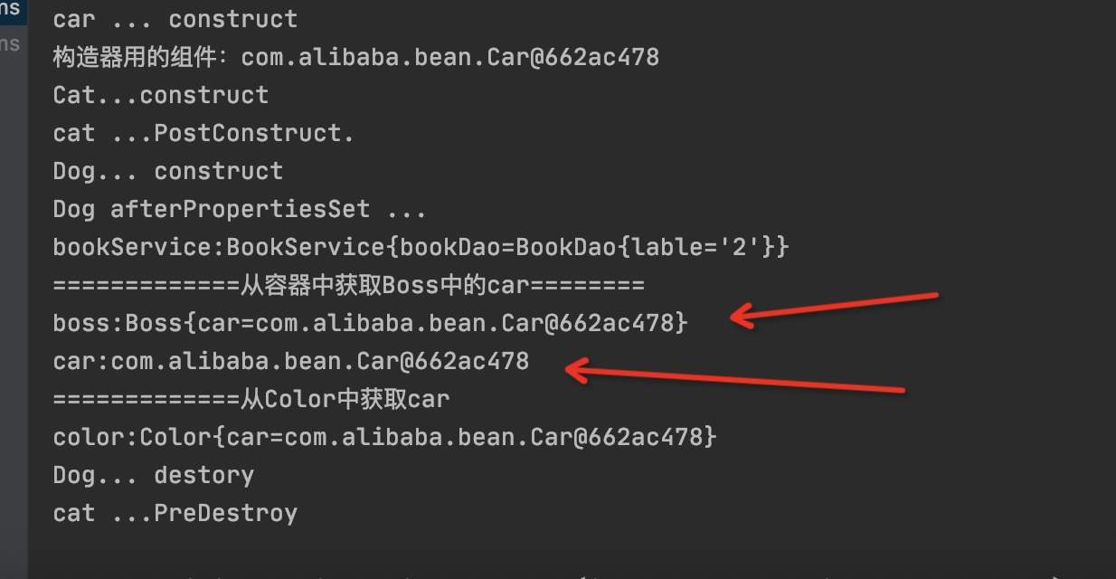 从控制台打印结果可以看到,从boss中获取的car对象和IOC容器中是同一个对象@662ac478